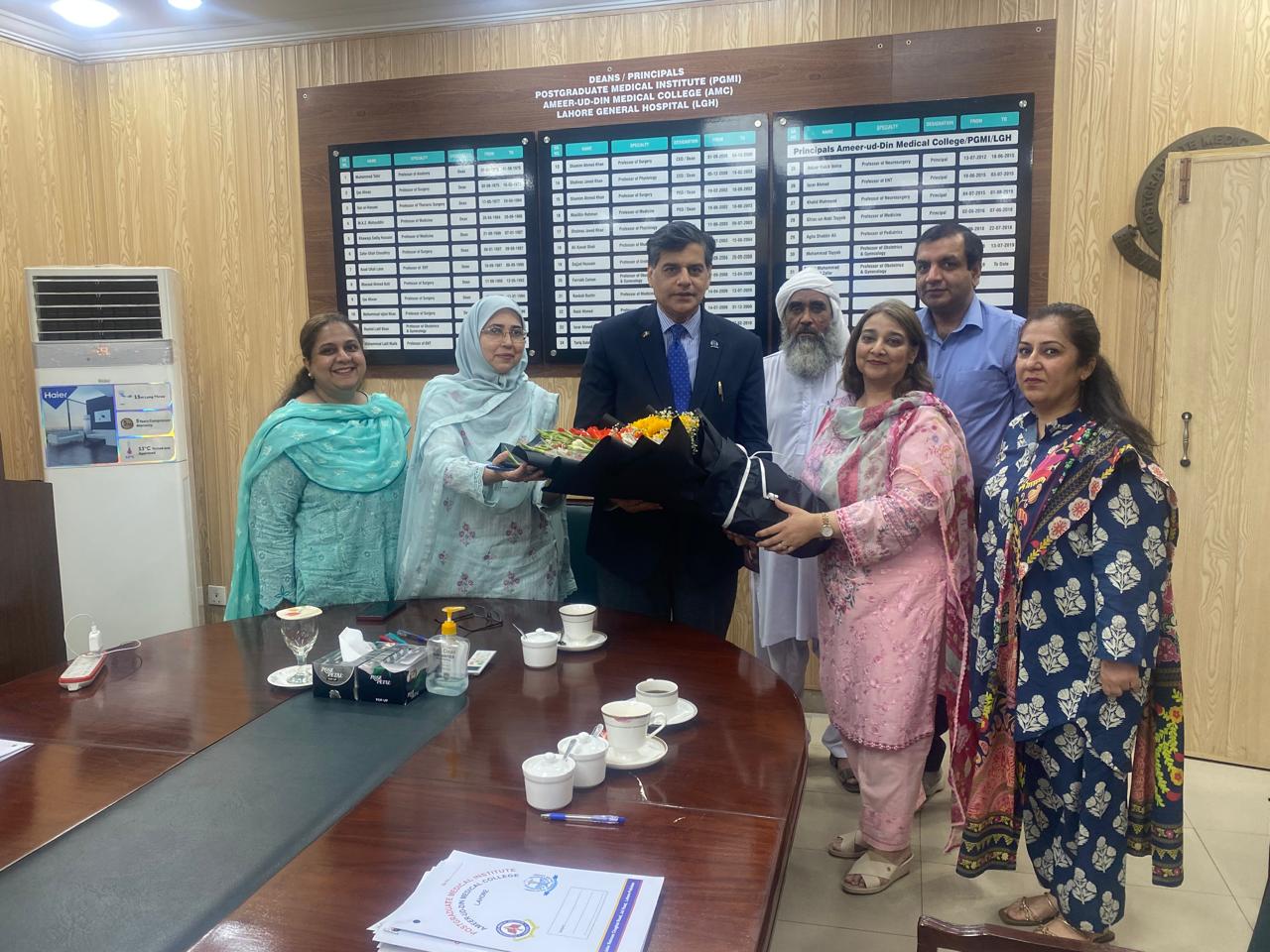 Principal Prof. Dr Muhammad Farooq Afzal was warmly welcomed by the PGMI/AMC administrative staff at PGMI/AMC Campus