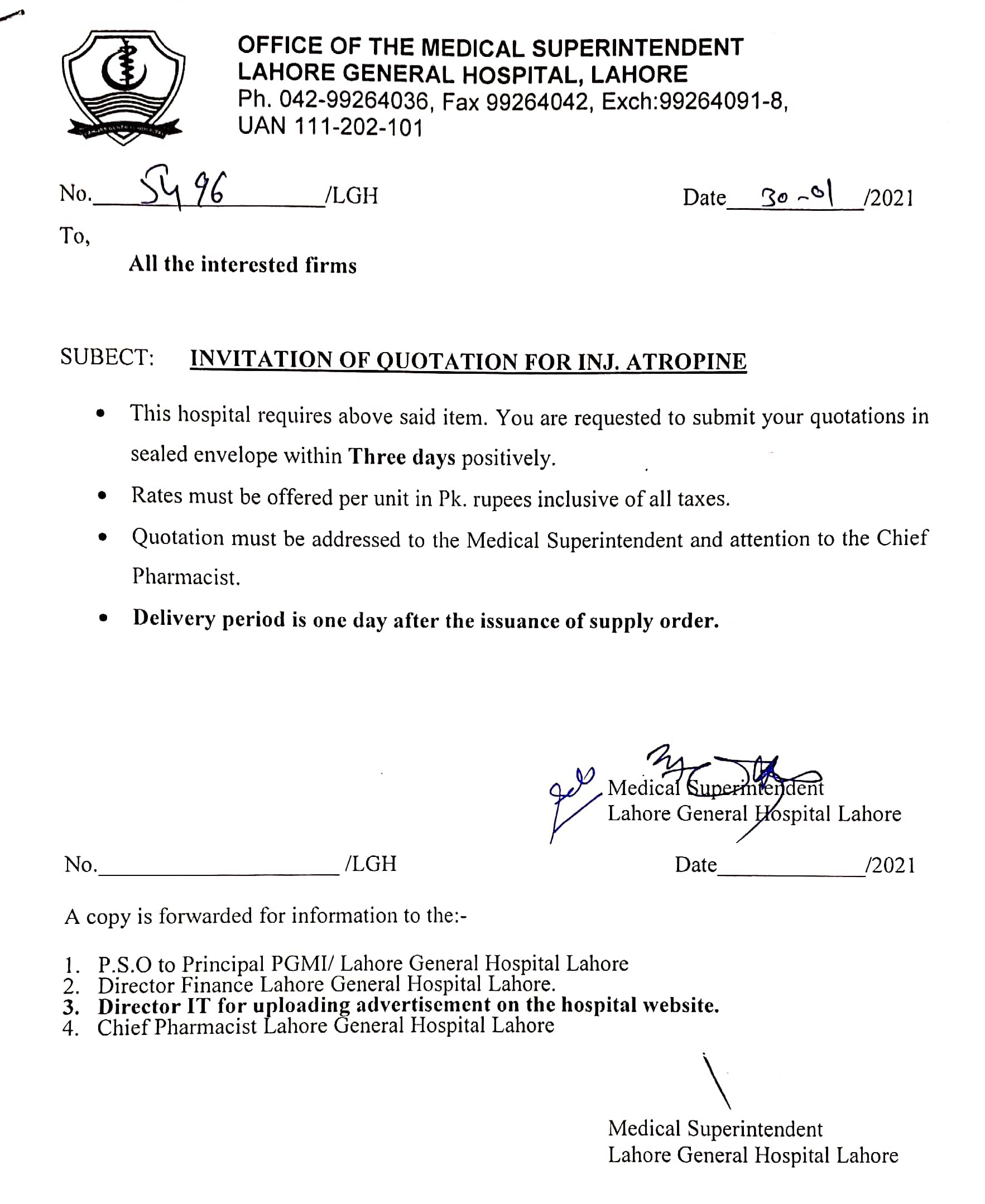 - Invitation Of Quotation Case no.5496 Inj. Atropine