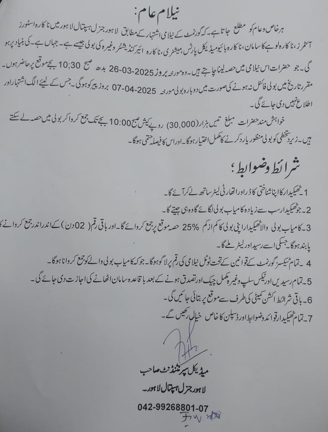- Minutes of Technical Evaluation eligibility of the Applicants for E-Auction of Canteen Public Cafeteria & Tuck Shop and Parking Area inside Lahore General Hospital (LGH), Lahore Uploaded on 01-11-2025
