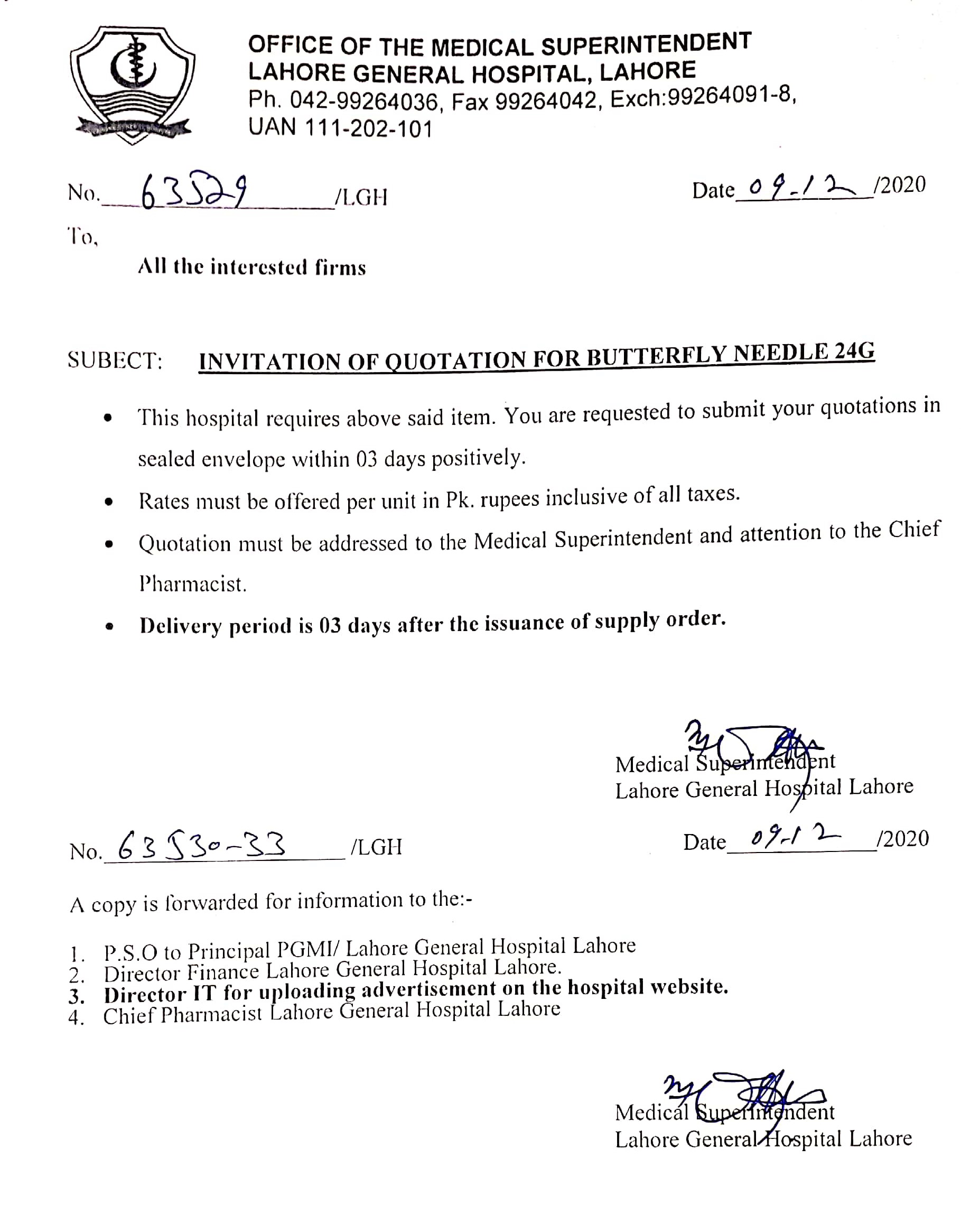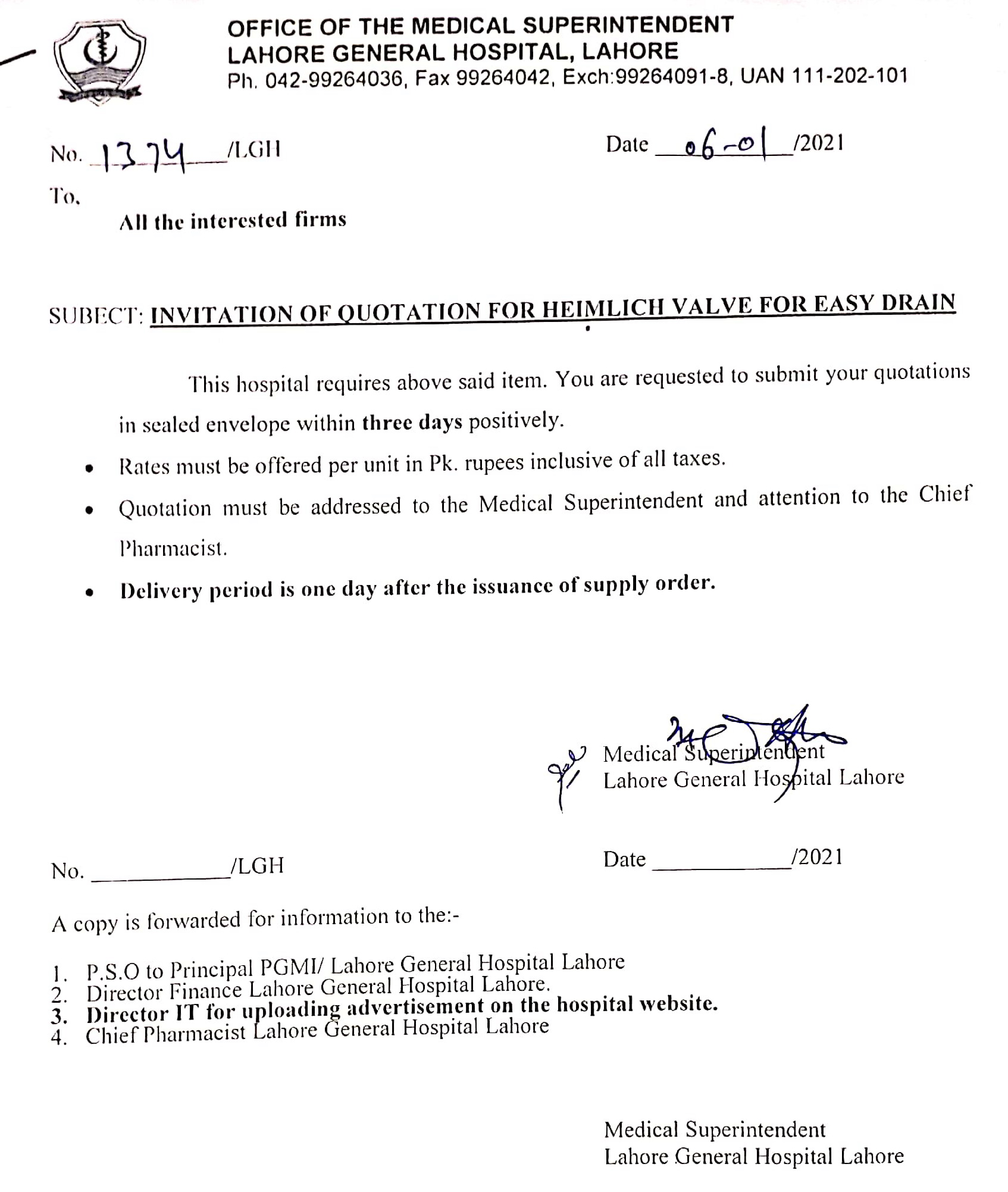 - Outsourcing of parking and traffic control system in Lahore General Hospital Lahore, 10/08/2024