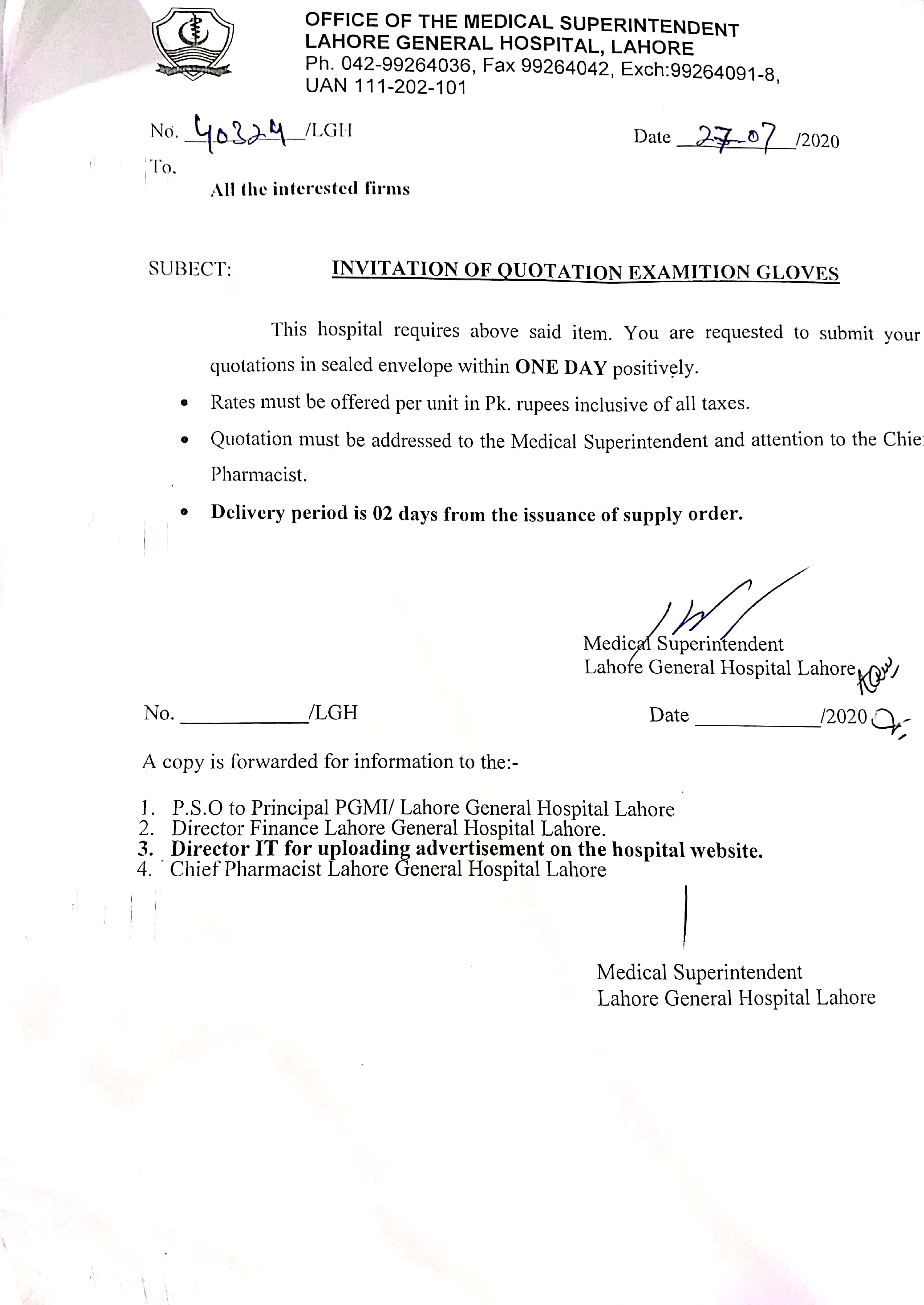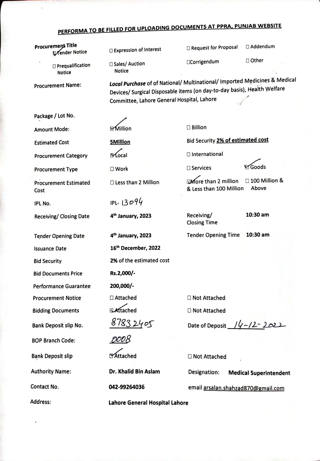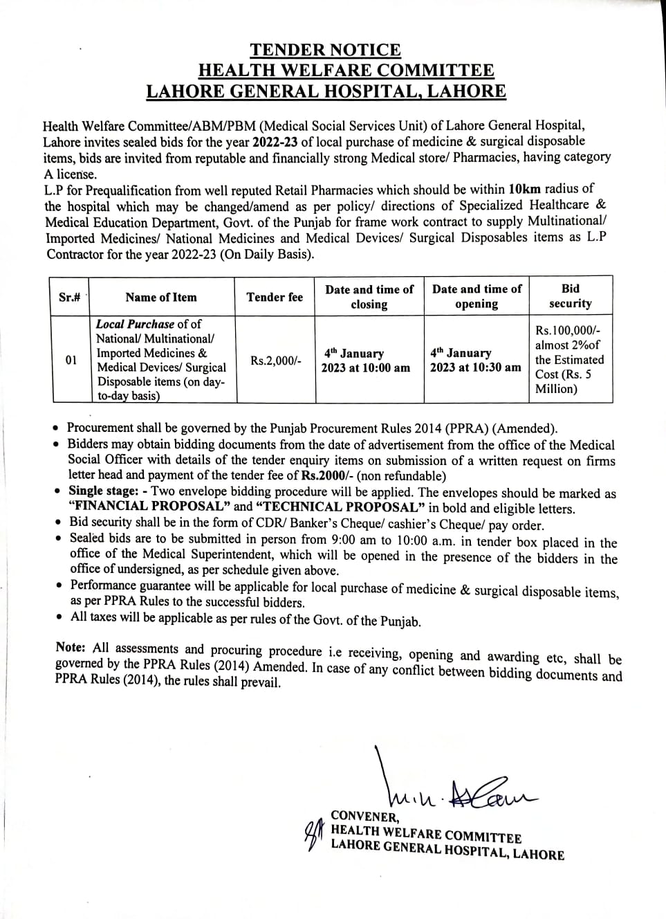 - Result of Technical evaluation for Bulk Purchase of Medicines 2024-25 LGH Lahore Uploaded on 23 May 2024
