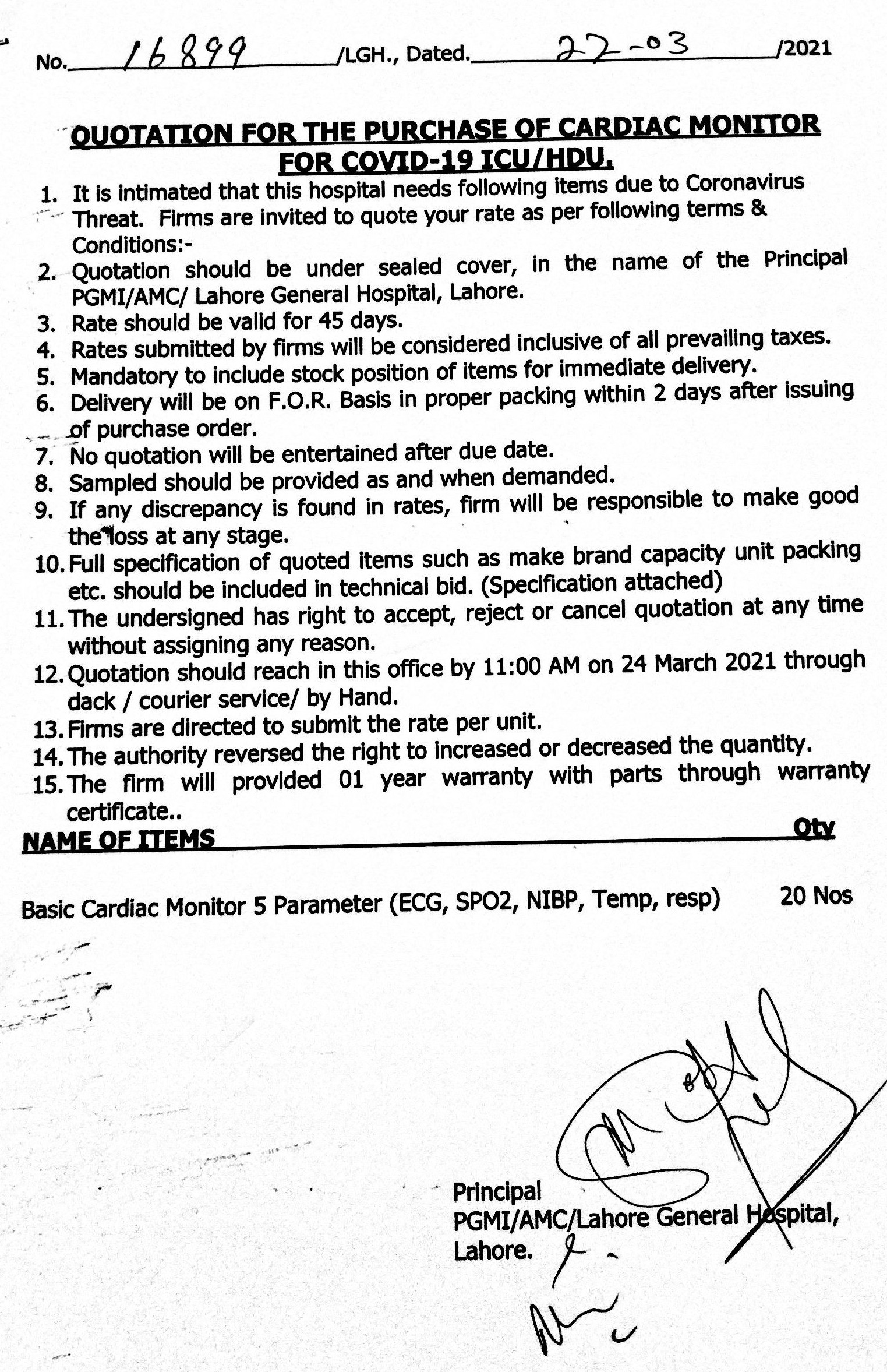 - Quotations A: Required aganist commodities for treatment of Corona Virus Patients (Covid-19)